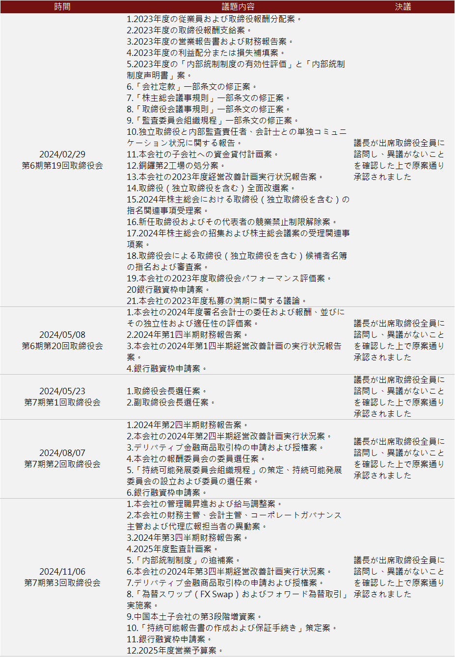(6)2024年5月に定時株主総會を開催し、法令に基づき株主総會の日程登録、法定期限內(nèi)での開催通知、議事手帳、議事録を作成。
