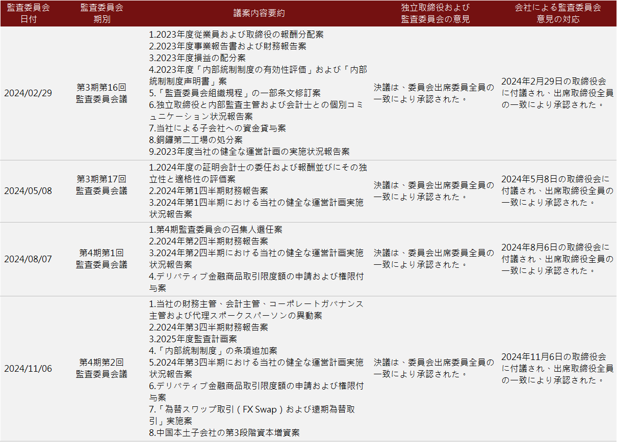 2.當(dāng)社の內(nèi)部監(jiān)査部門は、毎月監(jiān)査報告書および改善追跡報告を獨(dú)立取締役に送付するほか、內(nèi)部監(jiān)査責(zé)任者は四半期ごとに少なくとも1回、監(jiān)査委員會を開催し、獨(dú)立取締役に対して監(jiān)査業(yè)務(wù)および監(jiān)査結(jié)果の追跡狀況を説明します。
