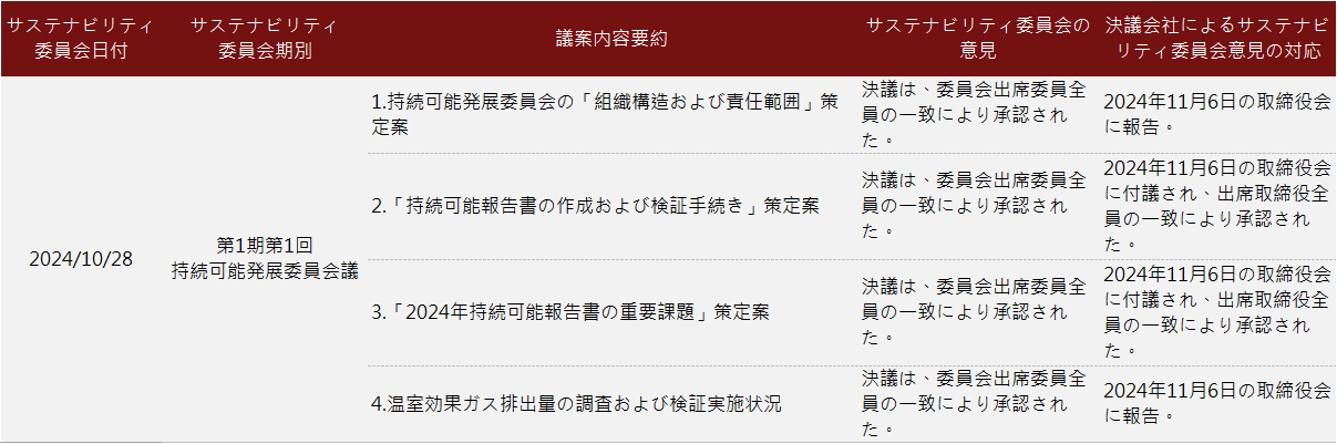 會社の持続可能な発展目標(biāo)を?qū)g現(xiàn)し、持続可能なガバナンスを強(qiáng)化するため、「上場企業(yè)ガバナンス?コード」および「上場企業(yè)持続可能な発展実務(wù)ガイドライン」の規(guī)定に基づき、持続可能な発展委員會を設(shè)置し、持続可能な発展委員會の組織規(guī)程を制定し、遵守することとします。