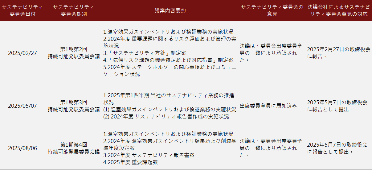サステナビリティ委員會は、四半期に少なくとも1回開催しています。